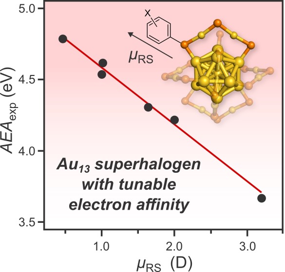 Tailoring the Electron Affinity of Au13 Superhalogen via Ligand Design